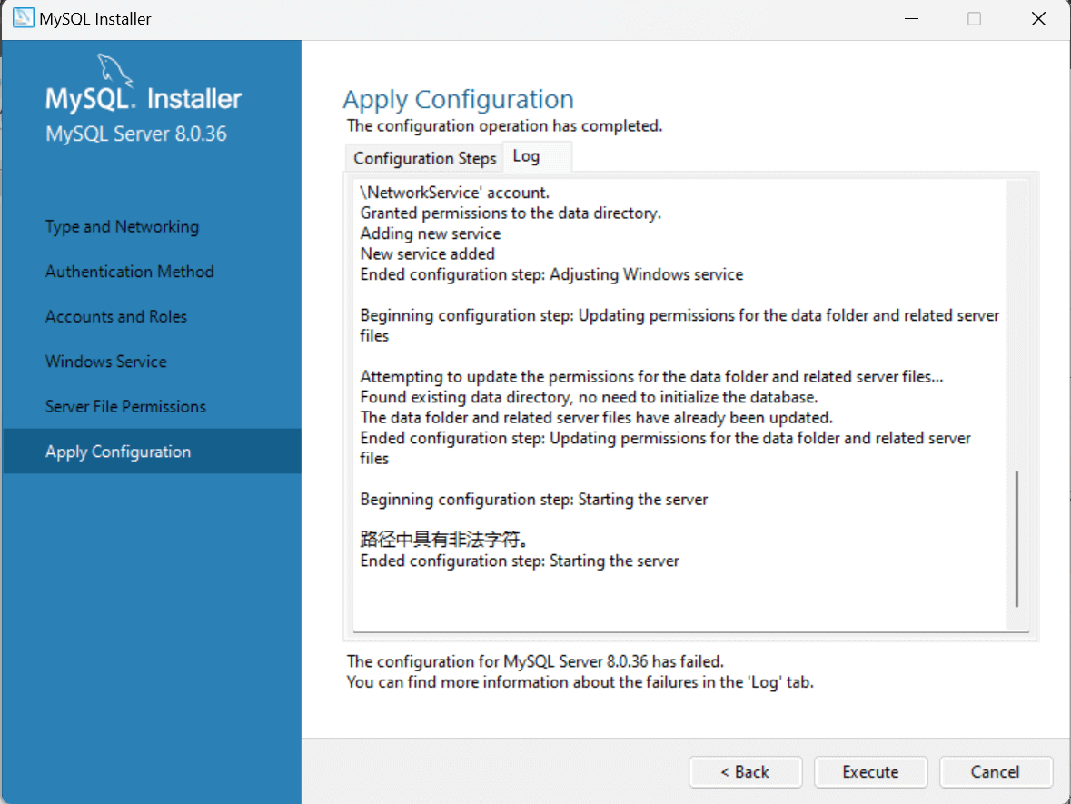 计算机名或用户名为特殊字符(如中文),系统文本的编码和解码格式不统一;导致 MySQL Server 的某些数据文件(如