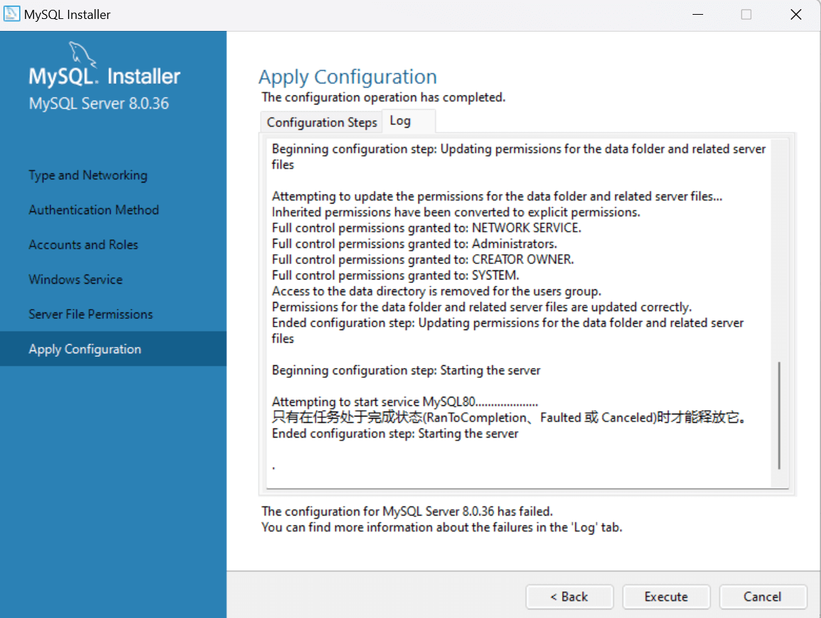 如果执行后提示类似于如下信息,则说明重新初始化成功,此时可以尝试重新执行 MySQL Server 安装