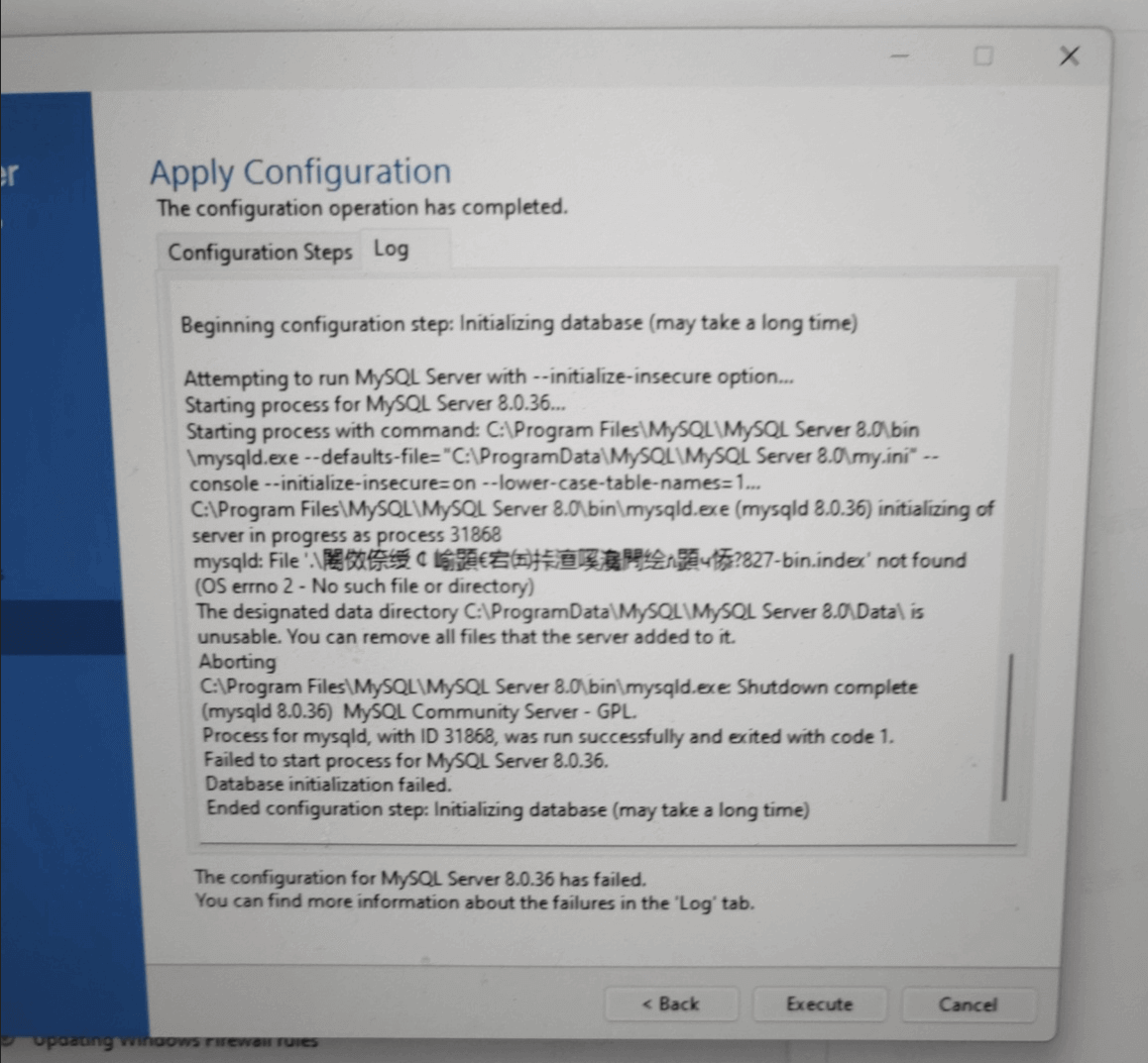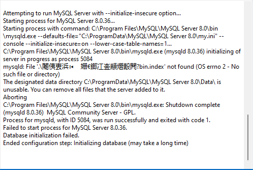 ..?bin.index 文件)自动命名为带有特殊字符,MySQL Server 在初始化配置时无法识别(找不到)这些文件