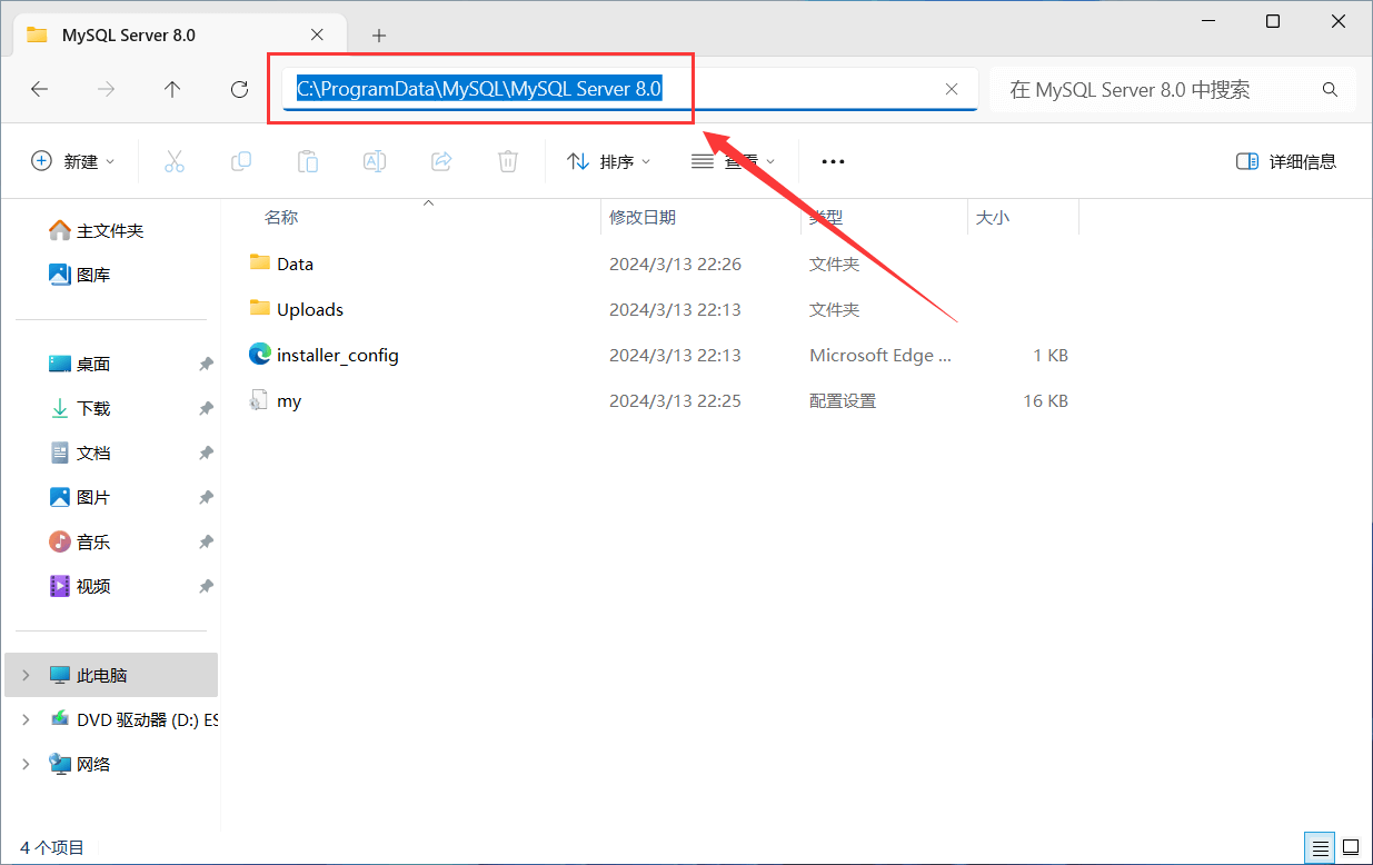 打开 MySQL Server 的数据目录(根据 Log 中的提示),如 C:\ProgramData\MySQL\MySQL Server 8.0